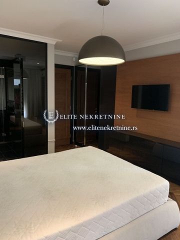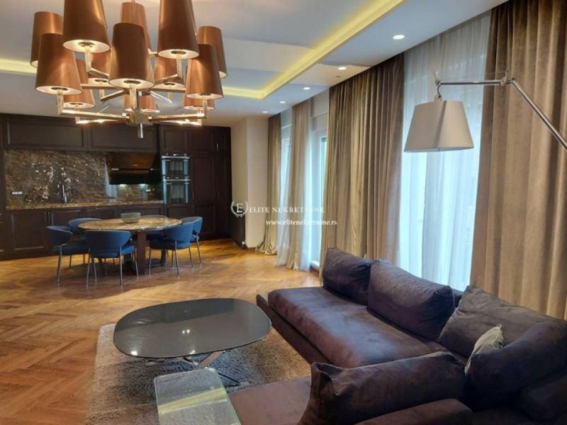 Odličan stan, smešten u novoj zgradi u blizini Hrama svetog Save. Mirna ulica sa dosta novih zgrada i izuzetnim sadržajem u neposrednoj blizini - brojne prodavnice, restorani, kafići i Kalenić pijaca. Do uključenja na autoput je potrebno svega pet minuta vožnje, a do frekventnih ulica kroz koje prolaze linije gradskog prevoza svega 5-10 minuta hoda. Zgrada ima moderni eksterijer sa liftom koji vodi do izuzetno uređene garaže zgrade. Stan se nalazi na drugom spratu. Atraktivna, moderna koncepcija obuhvata otvoren dnevni i kuhinjsko-trpezarijski prostor. Kuhinja je opremljena tehnikom vrhunskog kvaliteta. Stan poseduje dve spavaće sobe , kupatilo i gostinski toalet , prostranu terasu. Glavna spavaća soba ima kupatilo(master). Kompletno namešten italijanskim nameštajem. Enterijer je moderan i udoban, sa odličnim parketom, keramikom visokog kvaliteta i dizajna, kao i spuštenim plafonima sa ugrađenom halogenom rasvetom. Atraktivan, prijatan i udoban ambijent prilagođen životu modernog čoveka.