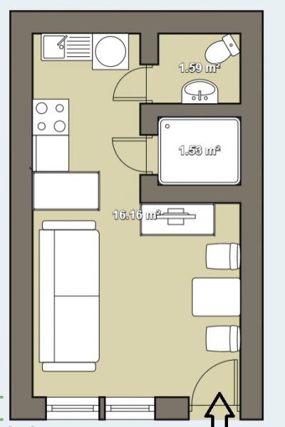 Stan ima frižider, veš mašinu, TV centralno grejanje. Nema kablovsku i internet, ali postoji mogućnost da ih zakupac uvede prema sopstvenim potrebama.