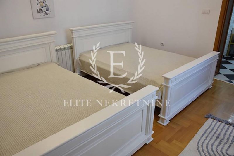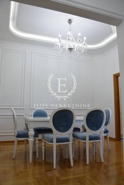 U ponudi je luksuzno opremljen stan od 90m², smešten na trećem spratu stambene zgrade bez lifta. Enterijer odiše elegancijom i udobnošću, sa prostranim salonom, svetlom dnevnom sobom, trpezarijom i moderno uređenom kuhinjom. Dve komforne spavaće sobe i dva savremeno uređena kupatila pružaju maksimalnu funkcionalnost i komfor. Stan je klimatizovan – svaki prostor poseduje sopstveni klima uređaj, a dodatnu udobnost tokom cele godine omogućava centralno grejanje.
