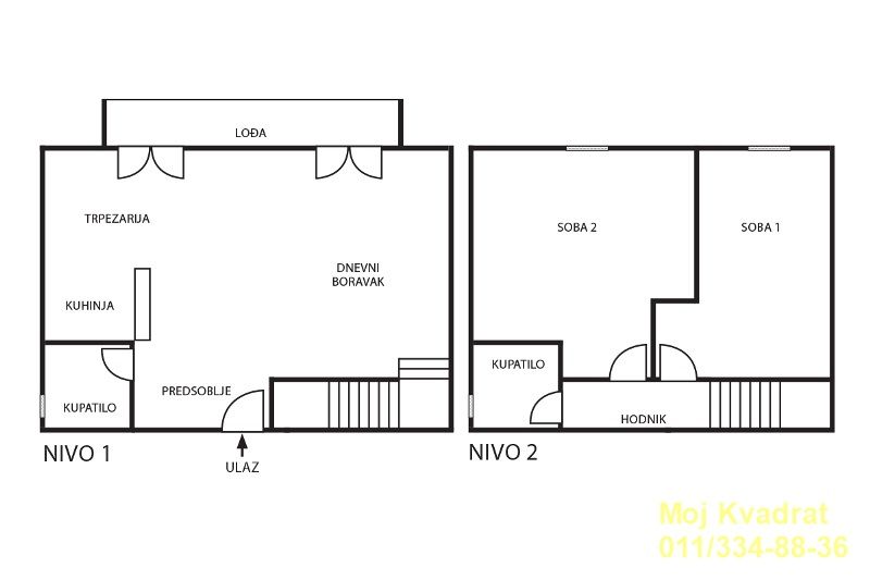Prvi nivo (50m2) se sastoji od predsoblja, dnevnog boravka povezanog sa kuhinjom i izlazom na terasu od 8m2 i kupatila. Gornji nivo - potkrovlje (36,5m2) ima predsoblje, dve spavaće sobe i kupatilo.