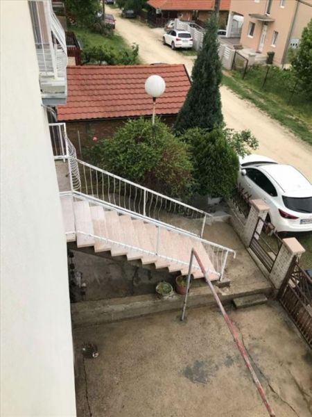 Iz prizemnog predsoblja sa leve strane se nalazi komforan trosoban stan: tri sobe, kuhinja, trpezarija, toalet, dve terase, klima LG.