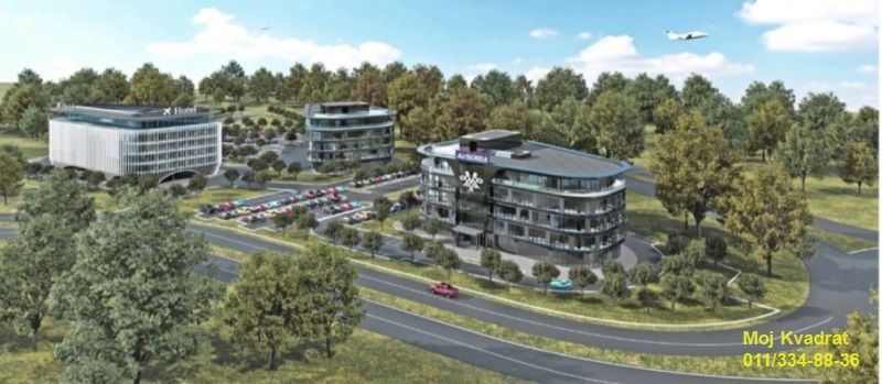 Parcela u zoni komercijalnih sadržaja, u blizini Vazduhoplovnog muzeja i novog hotela kod aerodroma Nikola Tesla.