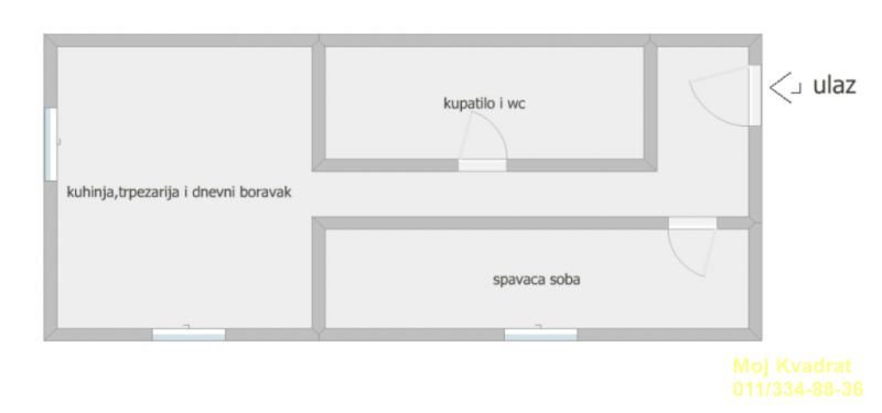 Stan je po strukturi dvosoban sa prostranim i komfornim kupatilom, dnevnim boravkom sa kuhinjom i trpezarijom i odvojenom spavaćom sobom.