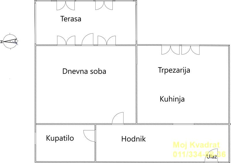 Sastoji se od ulaznog hodnika, kuhinje sa trpezarijom (koja se ujedno koristi i kao spavaća soba), dnevna soba i velika terasa od 12m2 (koja je naknadno adaptirana).
