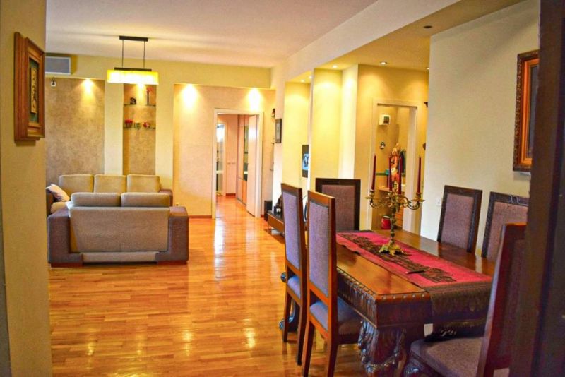 Funkcionalnog rasporeda: dnevno trpezarisjki deo, kuhinja, tri prostrane spavaće sobe, dva kupatila, toalet, garderober i velika terasa.