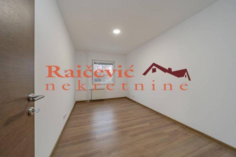 Prostorije: hodnik, veliki dnevni boravak sa kuhinjom i trpezarijom, 4 spavace sobe, kupatilo, toalet, degazman i velika terasa od 15 m2.