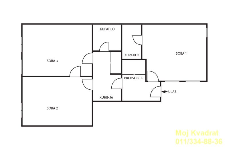 Stan trenutno funkcioniše kao dve zasebne celine - kao dvosoban: dnevna i spavaća soba sa kuhinjom, trpezarijom i kupatilom i kao studio: jedna soba sa čajnom kuhinjom i kupatilom. Dve stambene celine izdvojene su ulaznim hodnikom, tako da nema prepreka da raspoloživost stana bude u obimu koji odgovara vlasniku. U punom obimu stan ima tri sobe: dve spavaće i jednu dnevnu sobu, jednu kuhinju, trpezariju, čajnu kuhinju, dva kupatila, ulazni hodnik.