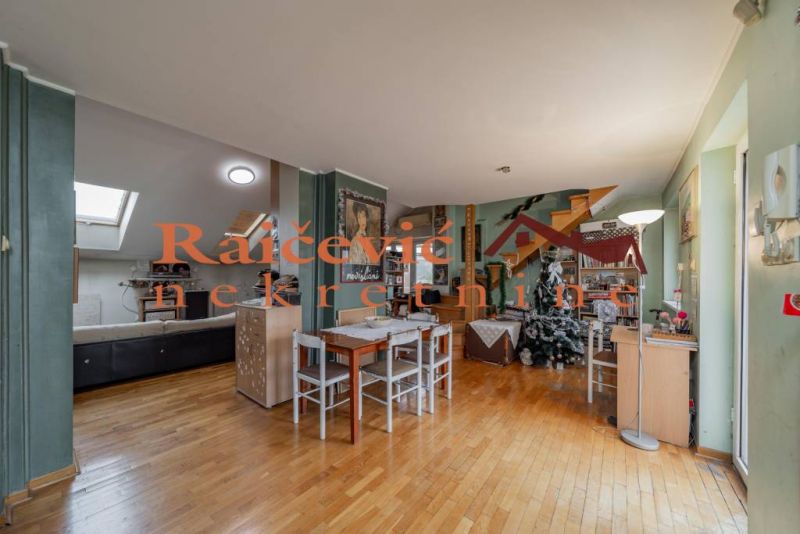 Dupleks povrsine 160 m2. Uknjizen je na 94 m2, a prema nacinu koriscenja po katastru poseduje i 2 terase ukupne povrsine 37.20 m2.