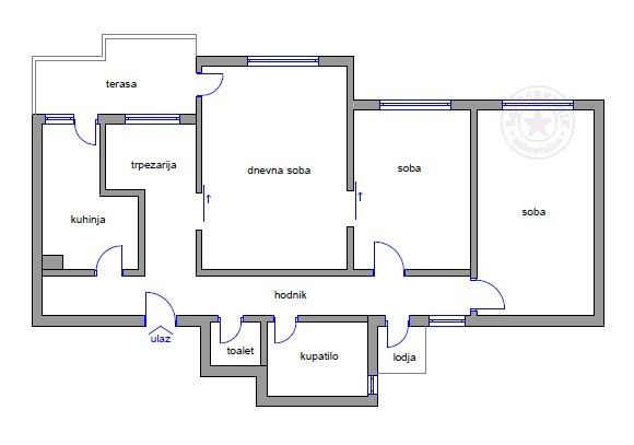 Stan je funkcionalog , dobro koncipiranog rasporeda (dnevna zona i spavaći blok odvojeni što pruža potpuni komfor): hodnik, toalet, kuhinja, trpezarija, dnevni boravak, veća lođa, degažman, dve spavaće sobe, kupatilo, manja lođa.