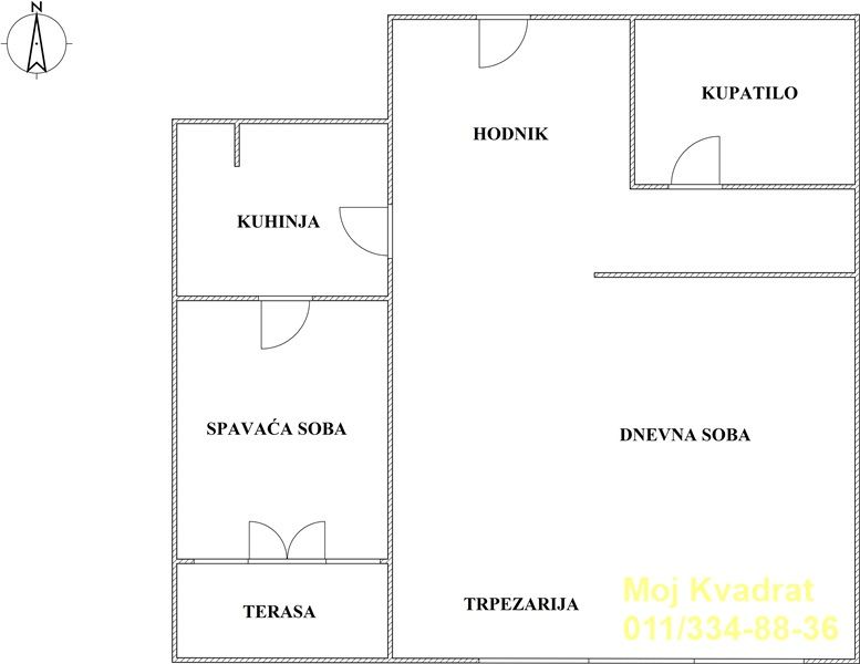 Sastoji se od ulaznog hodnika, dnevnog boravka sa trpezarijom, kuhinje, male spavaće sobe i kupatila.