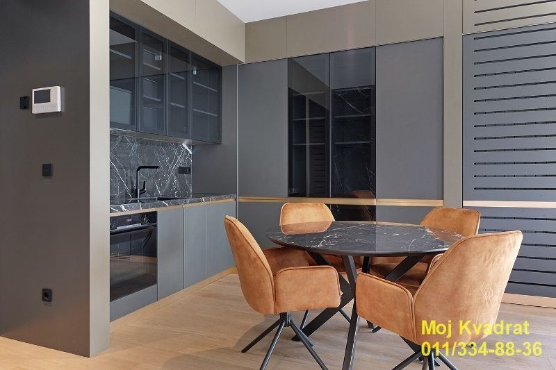 U cenu stana ulazi kompletno opremljena kuhinja izrađena po najvišim standardima, ugradna bela tehnika renomiranih proizvođaca i trpezarija.