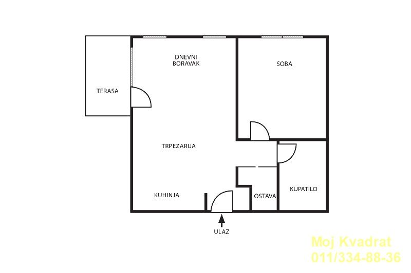 Sastoji se iz manjeg ulaznog dela, prostrane dnevne sobe sa kuhinjom i trpezarijom koje imaju izlaz na terasu. Hodnikom su odvojena spavaća soba, kupatilo i ostava predviđena za mašinu, sušač i bojler, već instaliran. Visina plafona je 2.82m.