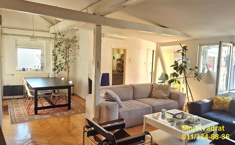 Nalazi se na poslednjem, četvrtom spratu i odiše šarmom autentične starogradnje, sa plafonima visokim do 3.60m.