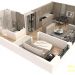 Prostorije: ulazni hodnik, dnevni boravak sa trpezarijom i kuhinjom, spavaća soba i terasa.