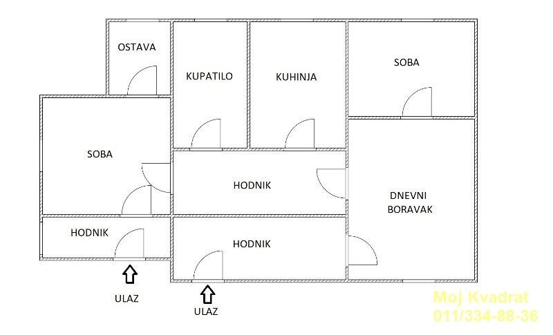 Stan ima dva ulaza, tako da mogu da se dobiju dva stana - komforna garsonjera i dvosoban stan.