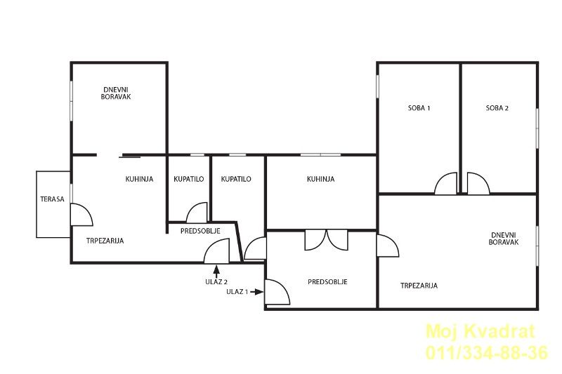 Jedna celina se sastoji od: ulaznog hodnika, dnevne sobe, dve spavaće sobe, prostrane kuhinje i kupatila.