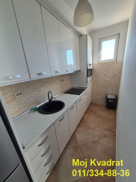 Opremljen je nameštajem, kuhinja poseduje kompletnu belu tehniku, a kupatilo veš mašinu.