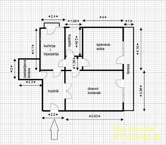 Sastoji se od ulaznog hodnika, prostrane dnevne sobe, kuhinje, prostrane spavaće sobe, kupatila, kao i jedne zastakljene lođe i dve terase, koje dodatno doprinose osećaju prostora i pružaju lep pogled.