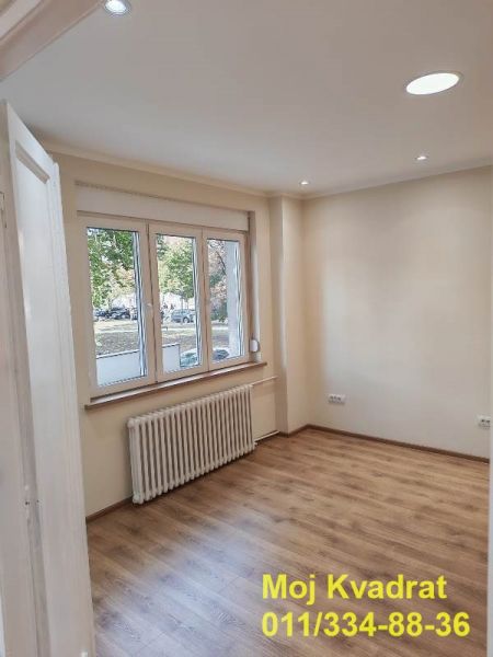 Izdaje se trosoban, kompletno i kvalitetno renoviran stan u visokom prizemlju (visina prvog sprata) u mirnoj ulici, preko puta Ekonomskog fakulteta, u zgradi iz 1950.-ih godina. Stan je izuzetno svetao, dvostrano orijentisan, odličnog rasporeda. U stanu je centralno grejanje, a poseduje i klima uređaj.