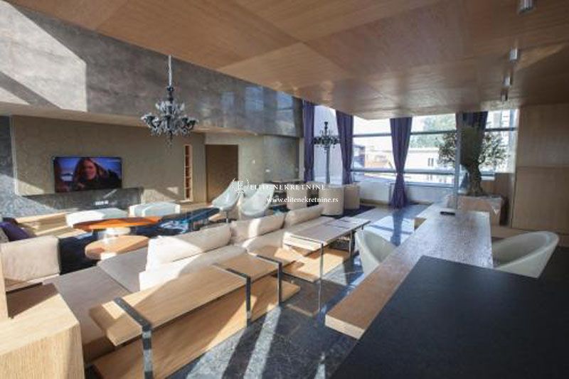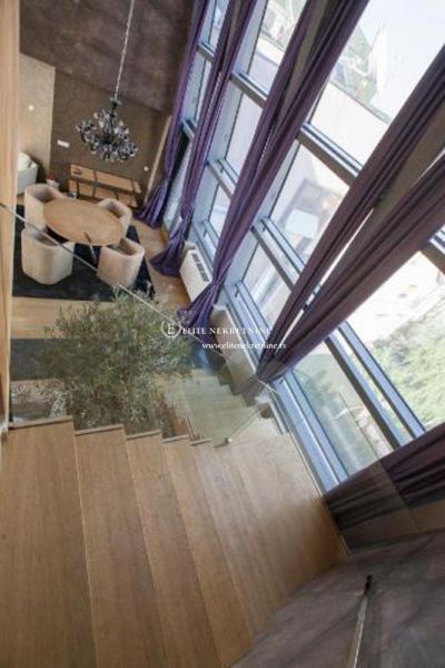 Izuzetno lep i luksuzan stan, dvostrano orijentisan. Sastoji se od prostranog dnevnog boravka u čijem sklopu su i kuhinja i trpezarija. Kuhinja je opremljena visoko kvalitetnom kuhinjskom opremom. Dnevni boravak je izuzetno svetao i izlazi na dve terase, čime se stiče utisak ogromne prostranosti. Donji nivo stana ima i toalet za goste. Galerija, koja se nalazi iznad kuhinjskog dela, ima pogled na dnevnu sobu i organizovana je kao spavaća soba sa luksuznim kupatilom. Kombinacija prirodnih materijala, jednostavnog nameštaja pravih linija i moderne rasvete, daje nesvakidašnji doživljaj prostora.